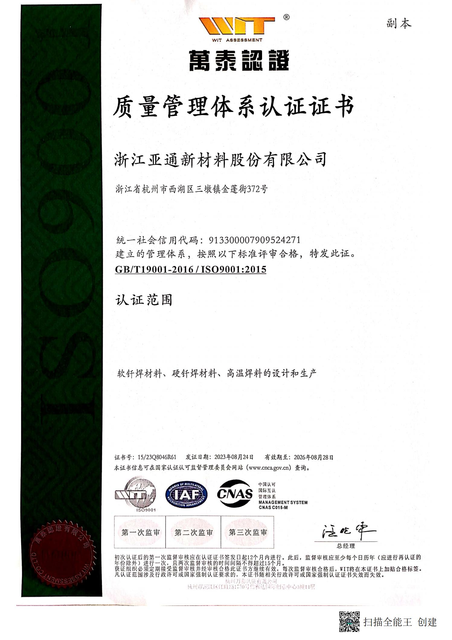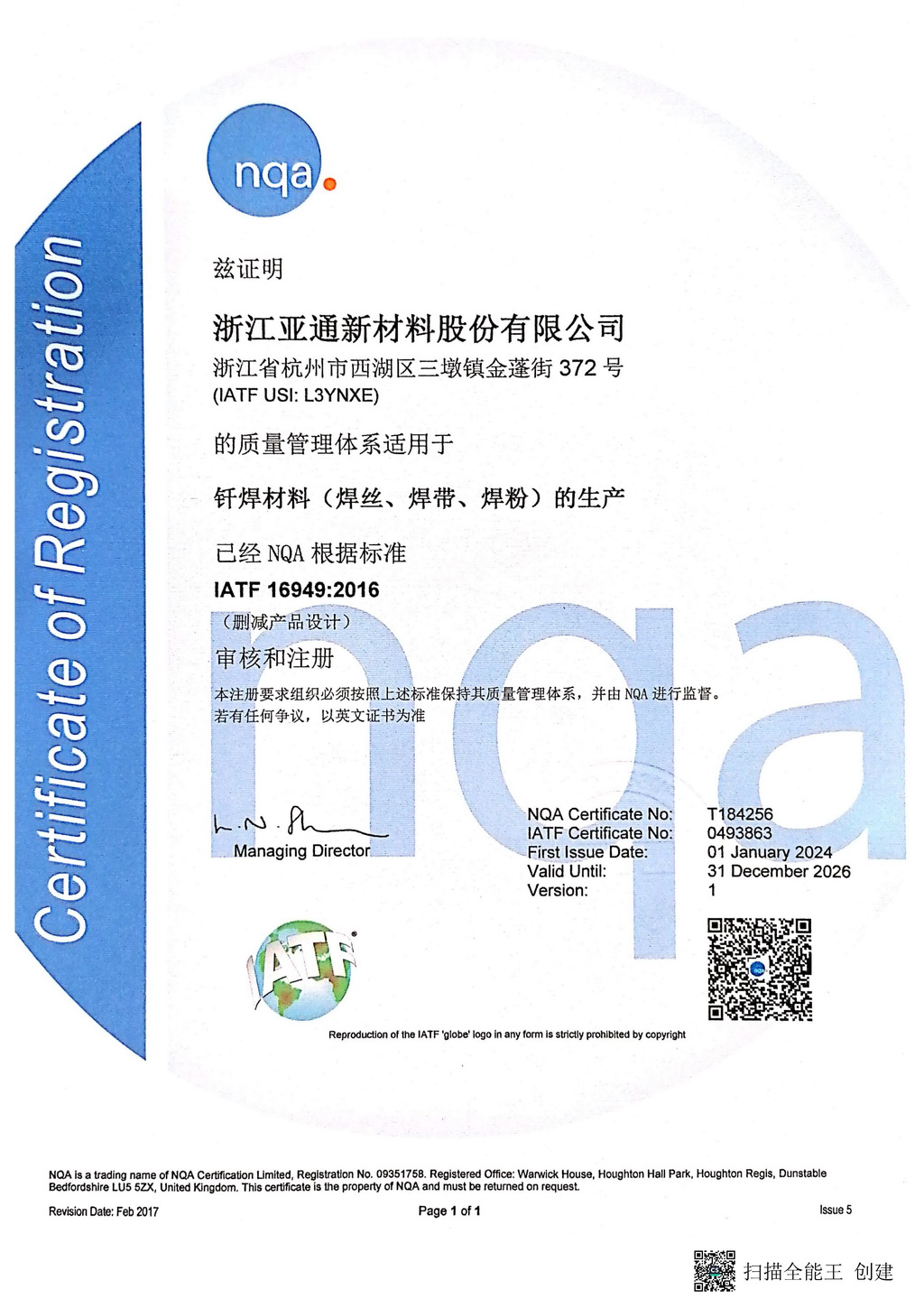 2016年獲批建設“浙江省亞通先進釬焊材料重點企業研究院”;榮獲“國家科技進步二等獎”